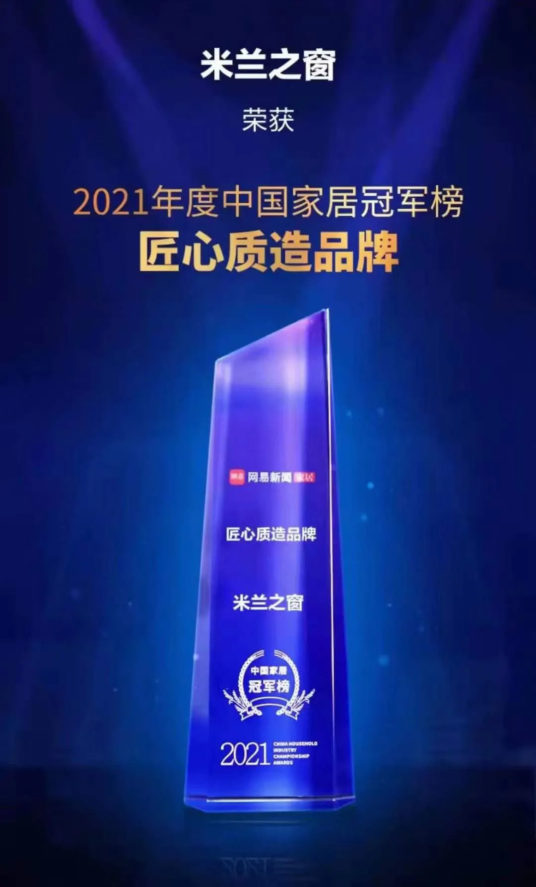 本次盛典重磅發布2021中國家居冠軍榜,以遴選行業優秀標桿,見證行業冠軍能量,激發優秀人物和品牌的引領作用,助推行業健康蓬勃發展。米蘭之窗實至名歸,以強大的綜合實力及廣受好評的產品服務品質,憑借冠軍實力攬獲“2021年度中國家居冠軍榜——匠心質造品牌”等多項重磅大獎。